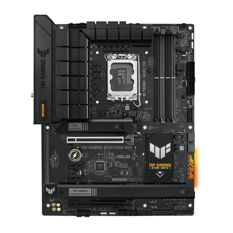 • مادربرد: ASUS TUF B760 PLUS WIFI D5 – دوام نظامی، پشتیبانی از DDR5 و وای‌فای داخلی سریع